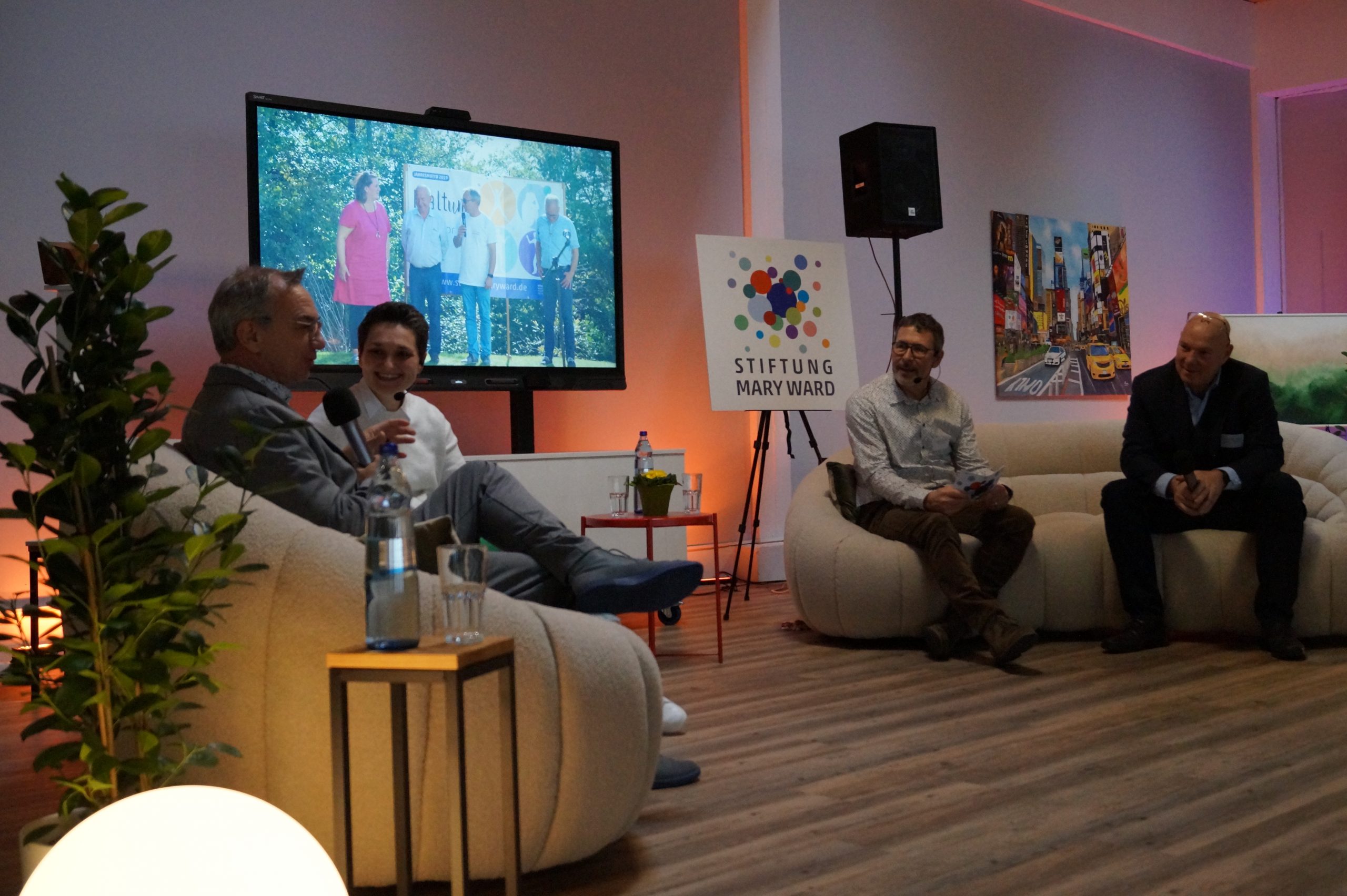 Nicht nur die Mary Ward Schwestern, sondern auch Freunde der Einrichtung, Kooperationspartner, Weggefährten, Vertreter der Stadt Velbert, Mitarbeitende und Jugendliche der Einrichtung führten uns auf der Reise durch die Zeit – vom Haus Maria Frieden zur Stiftung Mary Ward – durch das Programm. Aber auch die Jüngsten präsentierten sich stolz auf der Bühne – die Kinder der Kita Mary Ward und Kinder aus den